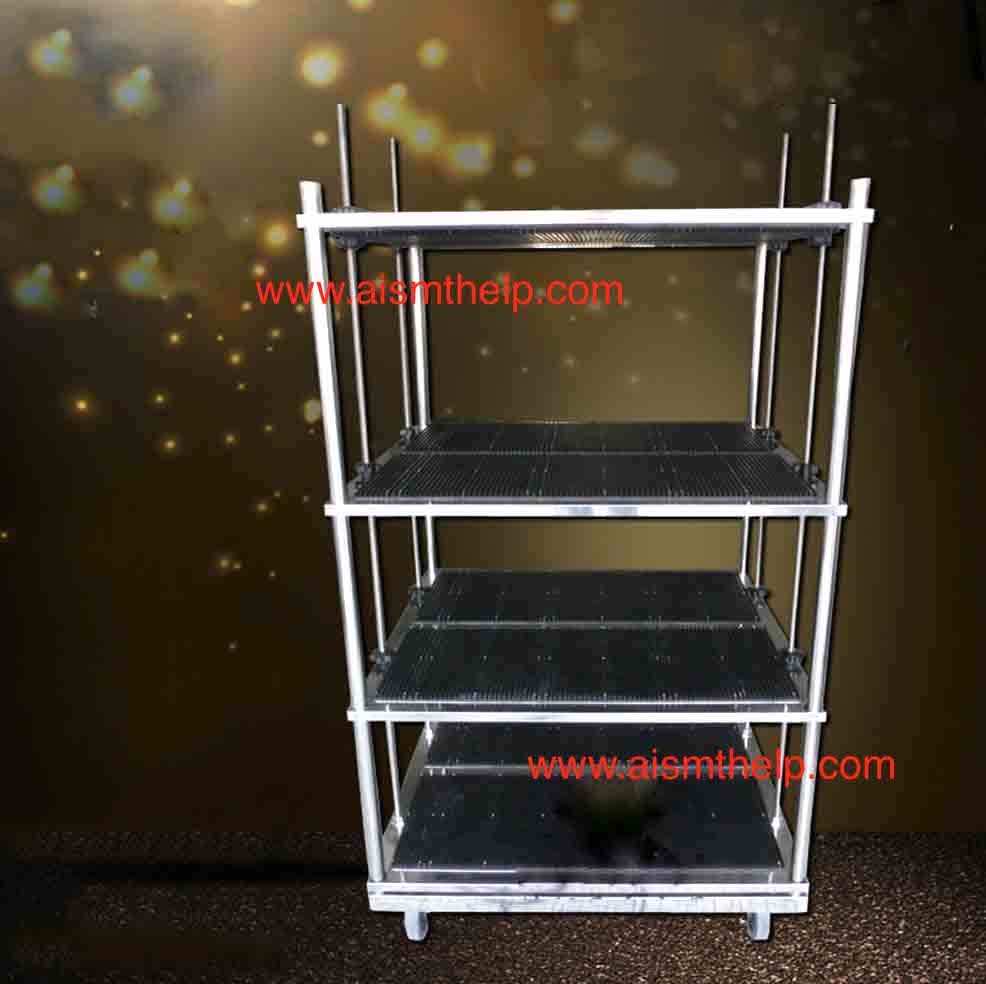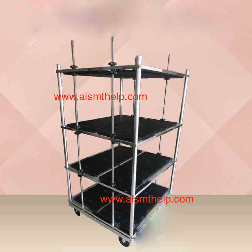 Each layer of the PCB turnover vehicle can be adjusted. The outer dimensions of the movable PCB turnover vehicle are length 900*width 820*height 1500MM. The turnover vehicle has four universal casters. Each caster can bear a load of 100KG.