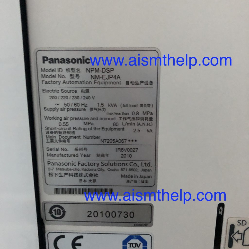 PANASONIC NPM-DSP NM-EJP4A FACTORY AUTOMATION EQUIPMENT SMT MACHINE 1R8V0027